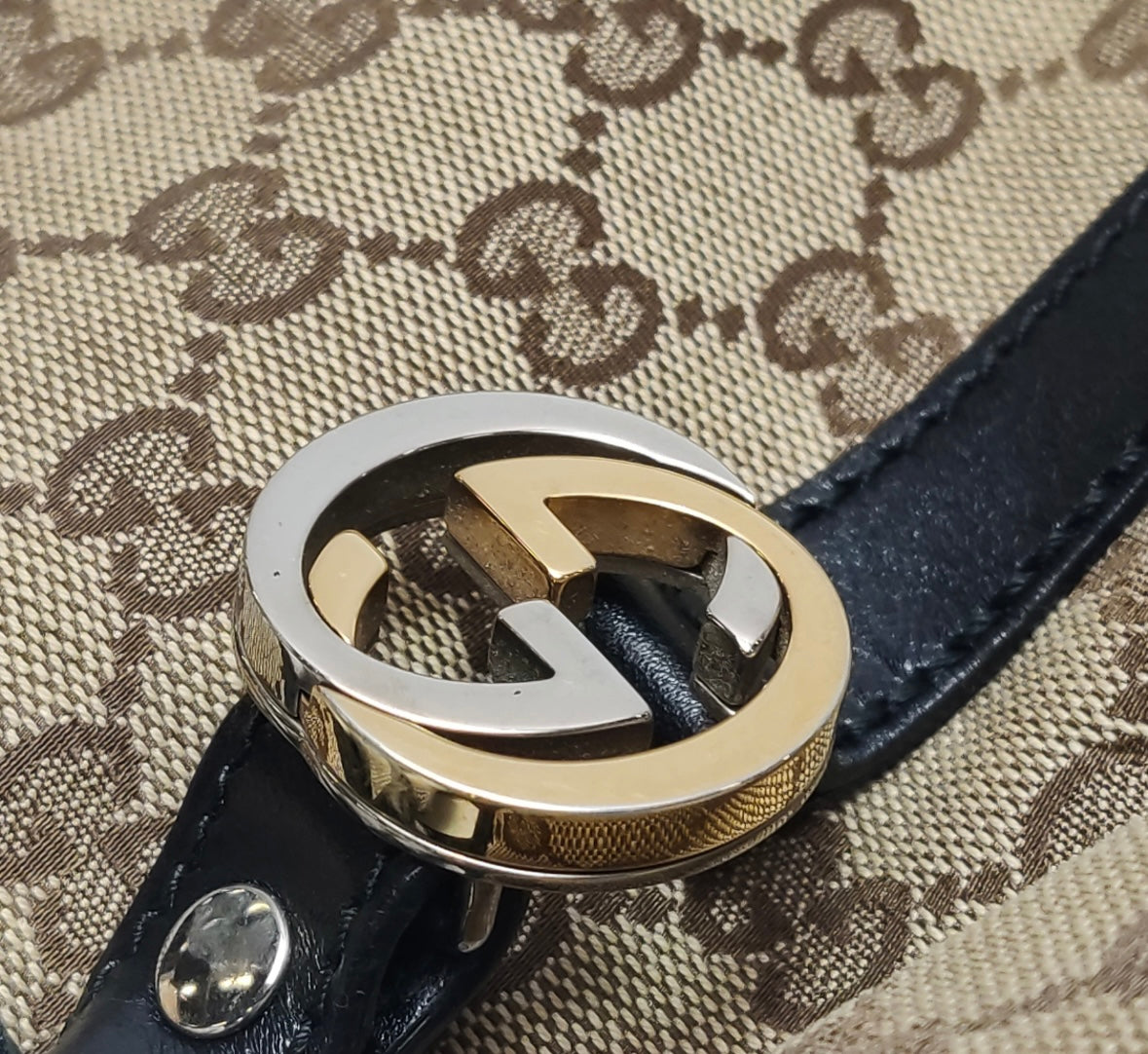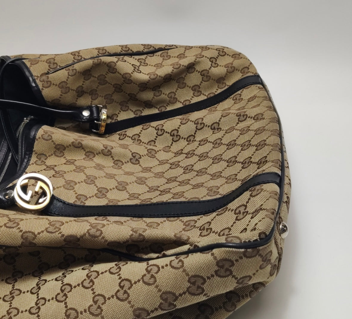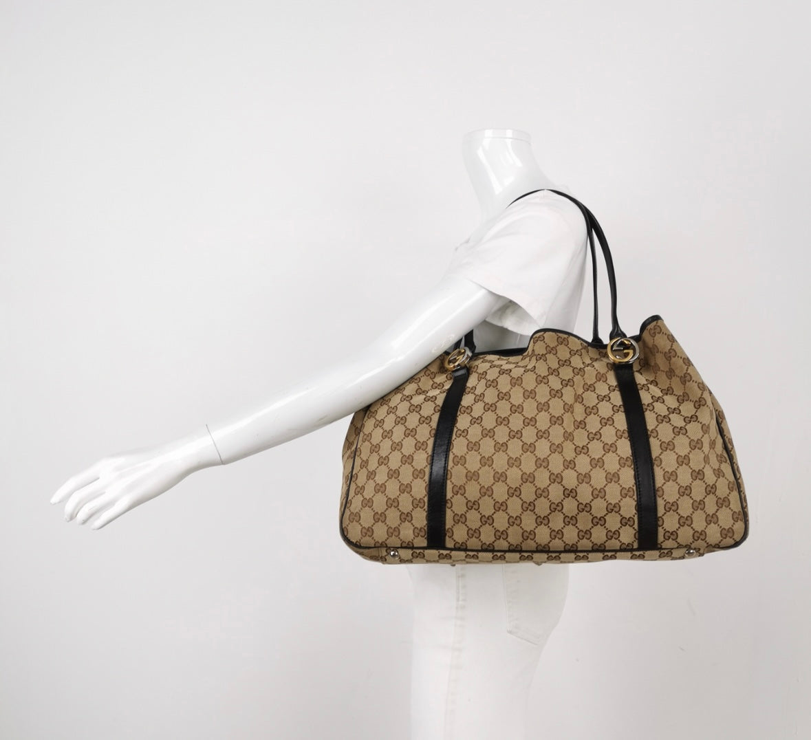 Gucci GG Monogram Canvas Tote – Black Leather Trim
