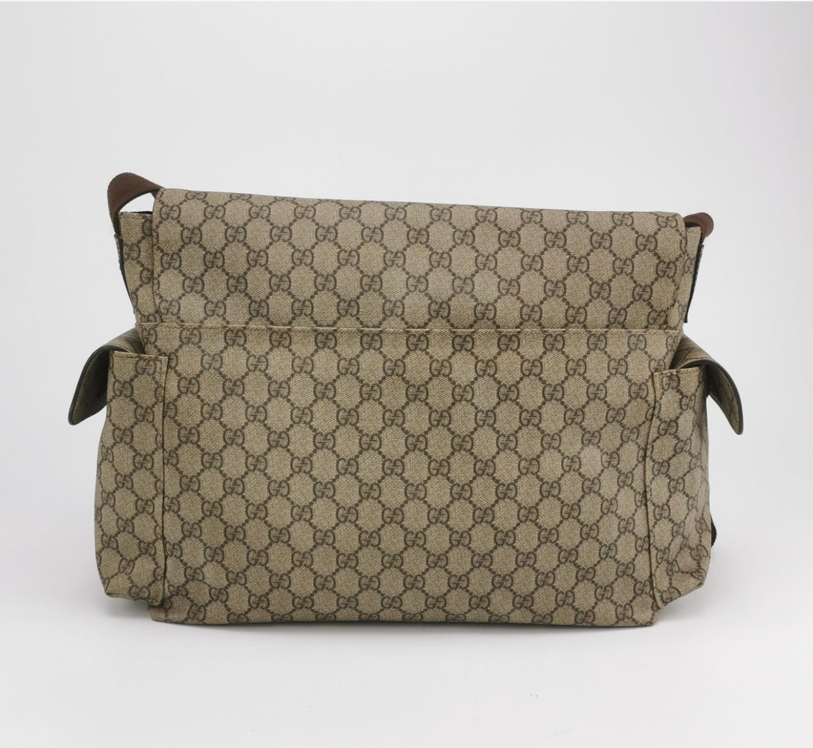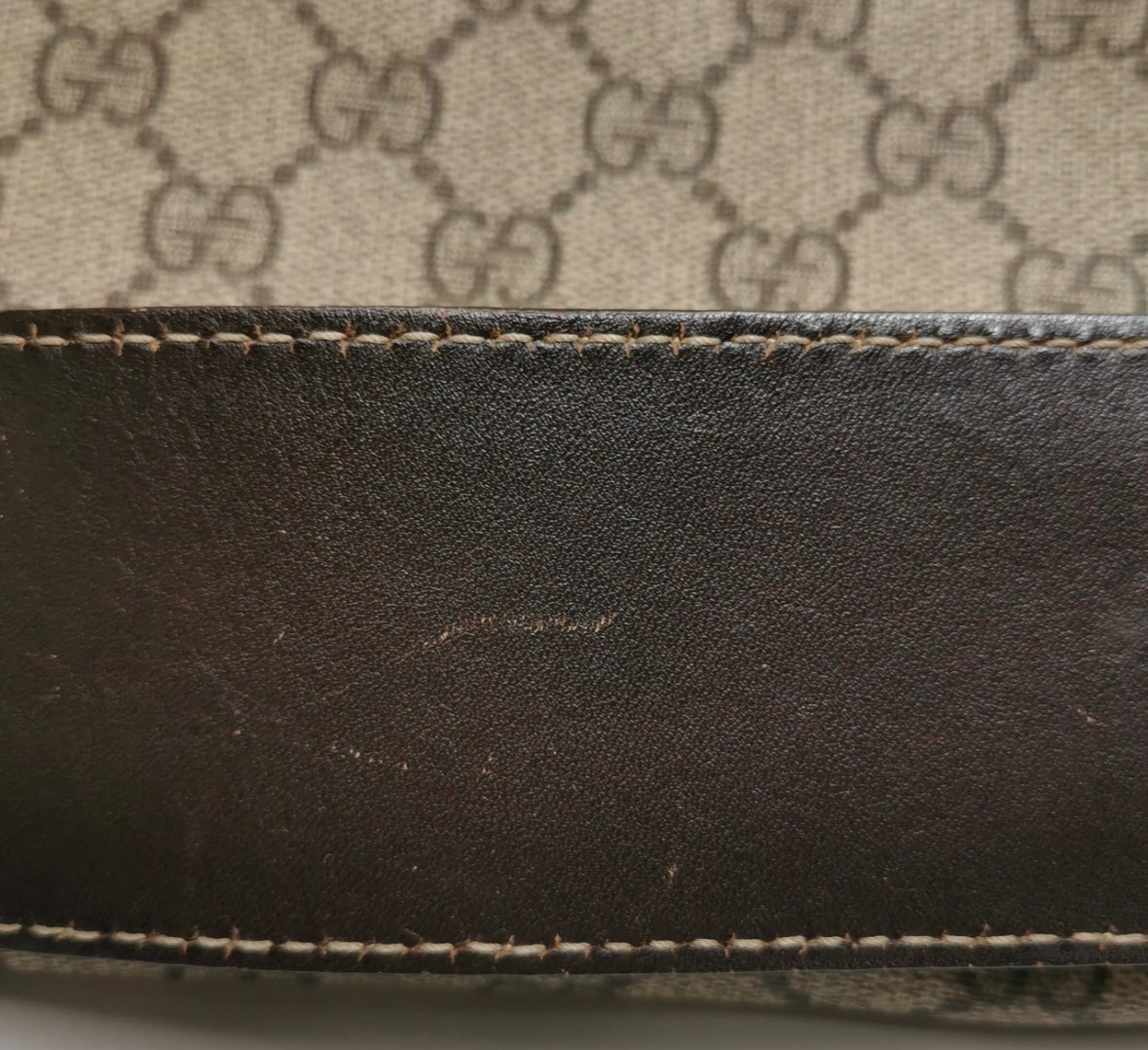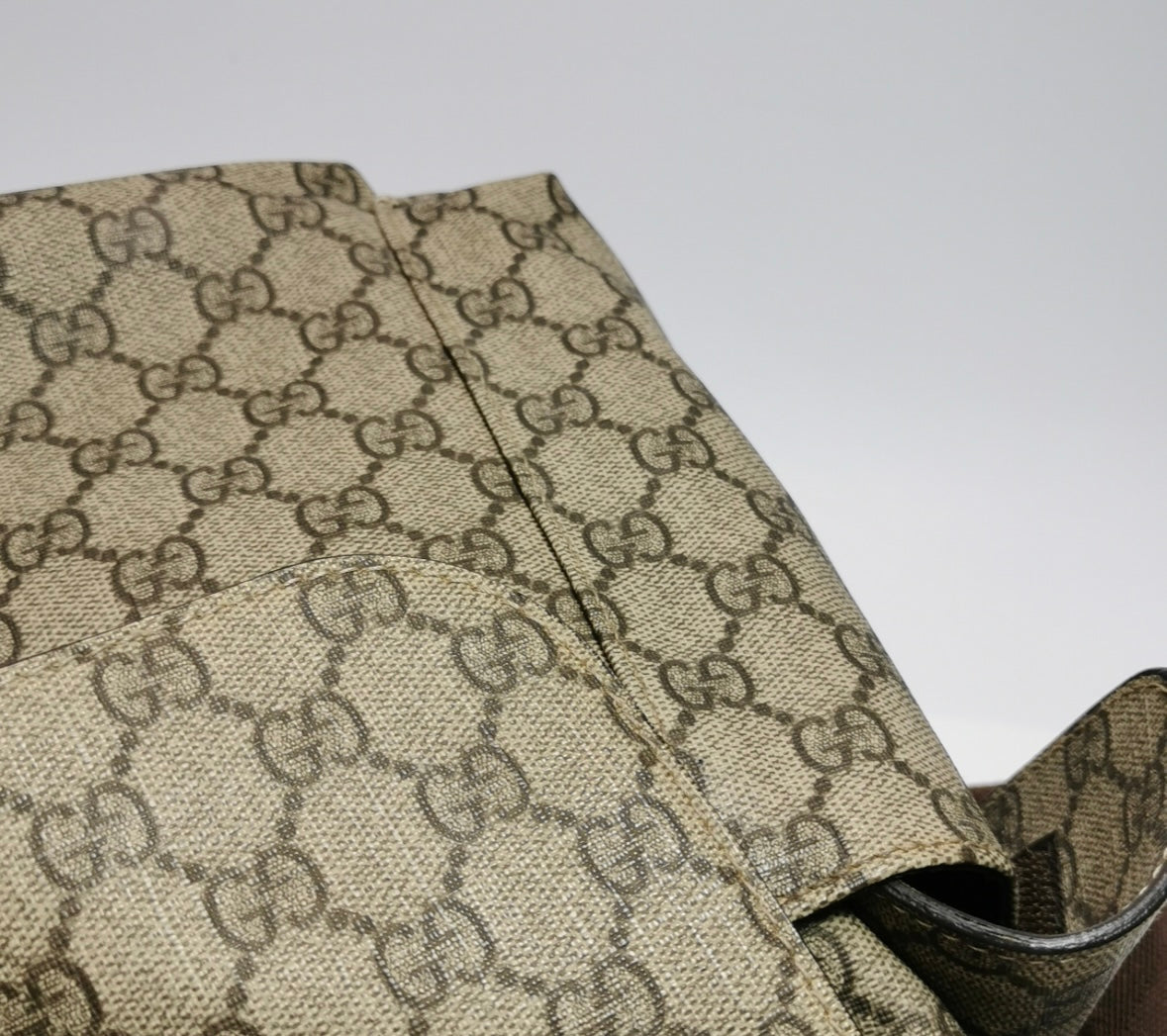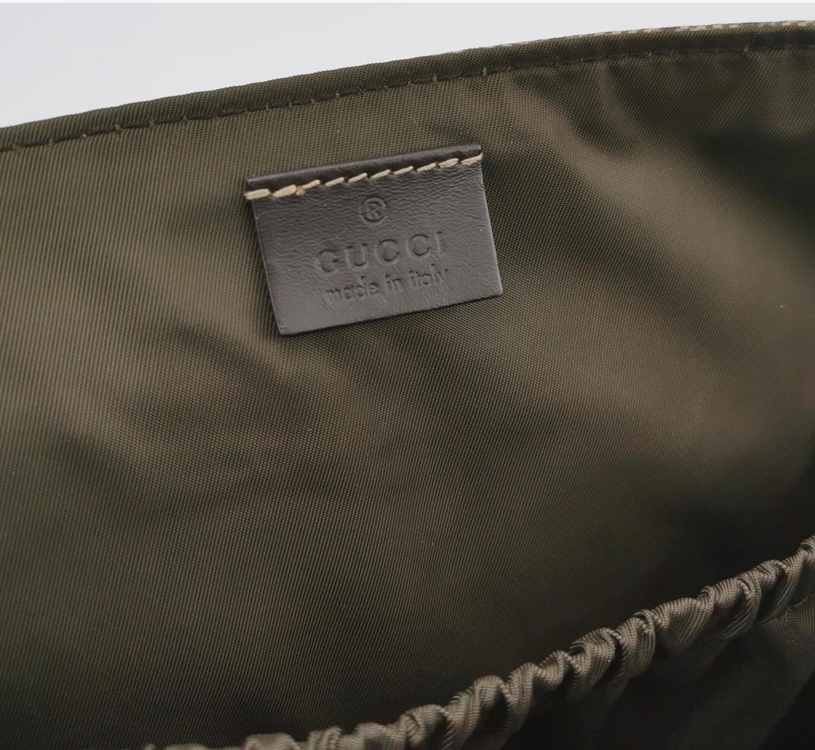 A functional archive-era Gucci Diaper built for everyday use. Classic GG monogram canvas is paired with dark brown leather trim and a wide adjustable shoulder strap, giving it a clean, utilitarian feel. Roomy without being bulky, this is a practical crossbody with unmistakable Gucci DNA.
