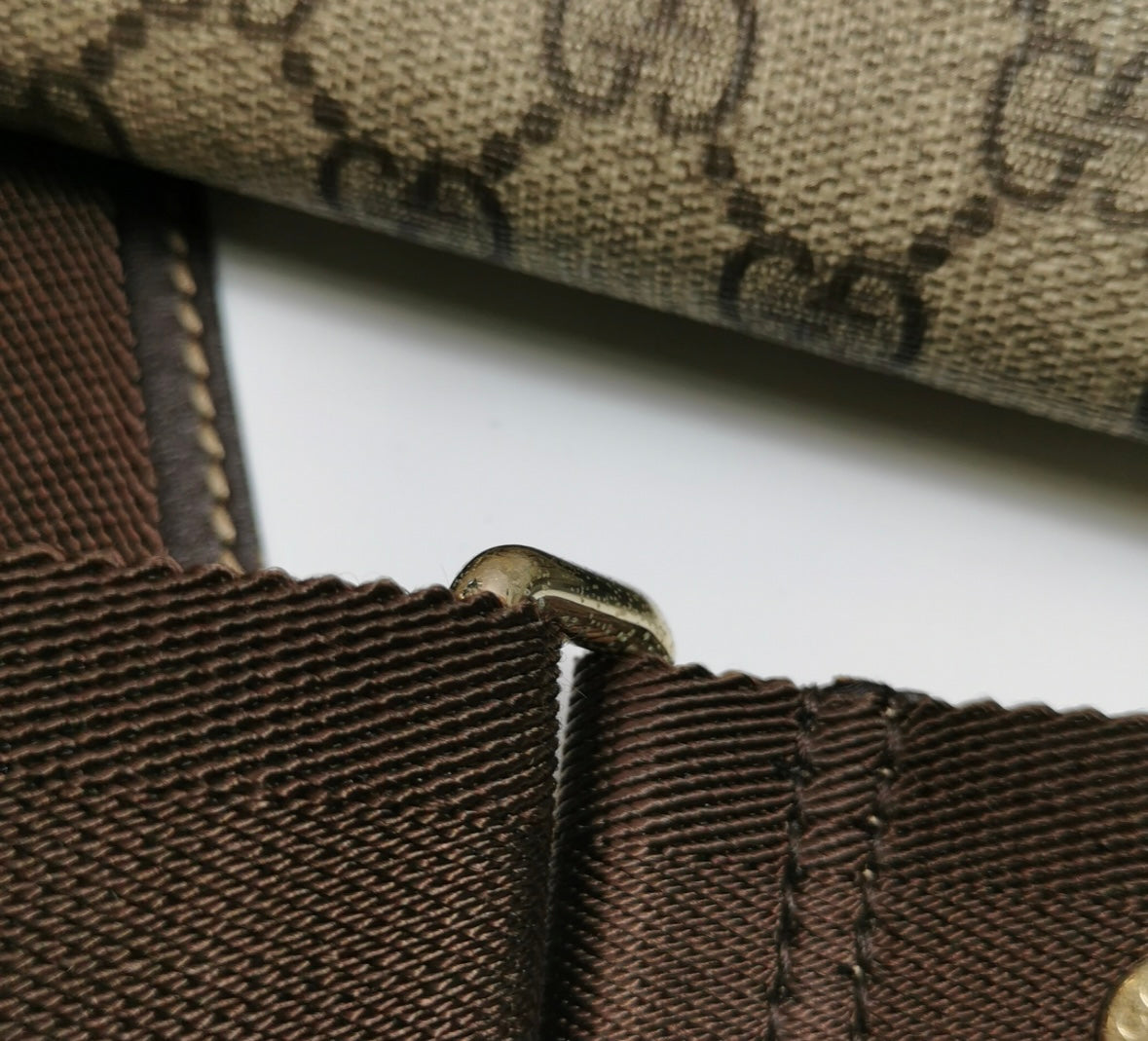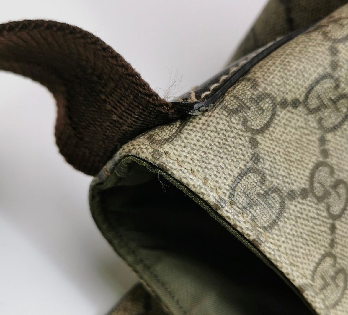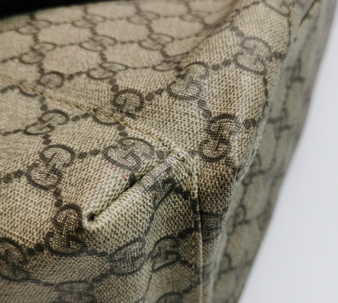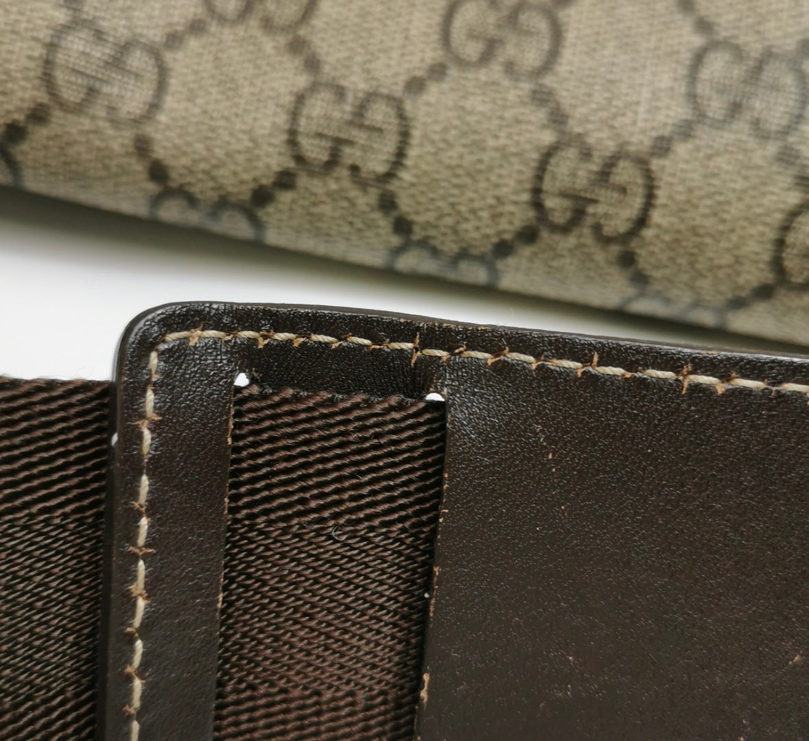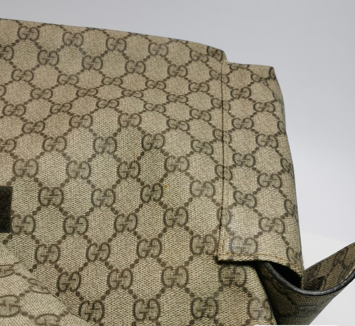 A functional archive-era Gucci Diaper built for everyday use. Classic GG monogram canvas is paired with dark brown leather trim and a wide adjustable shoulder strap, giving it a clean, utilitarian feel. Roomy without being bulky, this is a practical crossbody with unmistakable Gucci DNA.