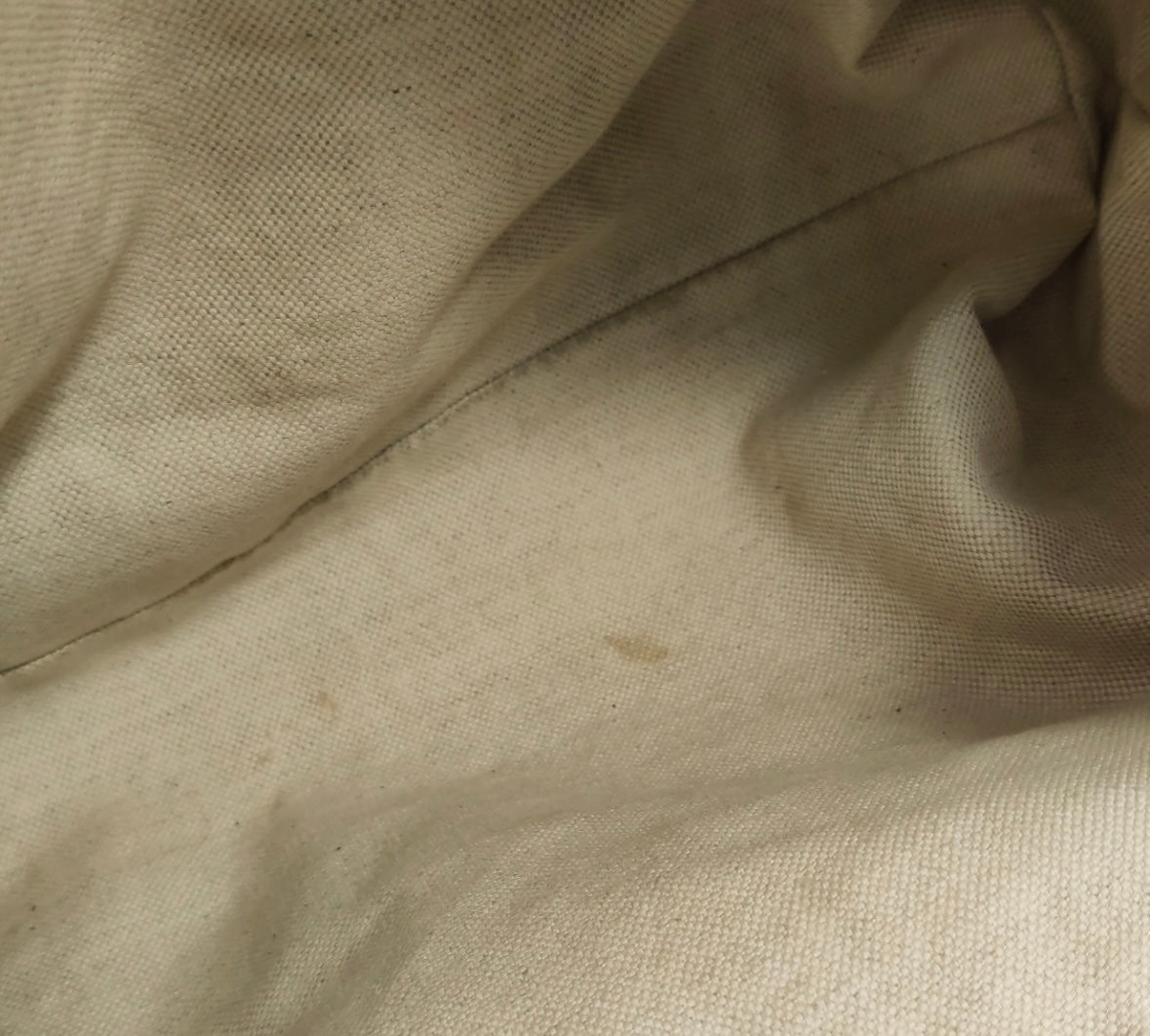 Good vintage condition. Canvas remains strong with light overall discoloration and a few faint marks consistent with age. Leather handles show gentle wear and natural creasing. Interior clean with light signs of use. Hardware intact and fully functional.