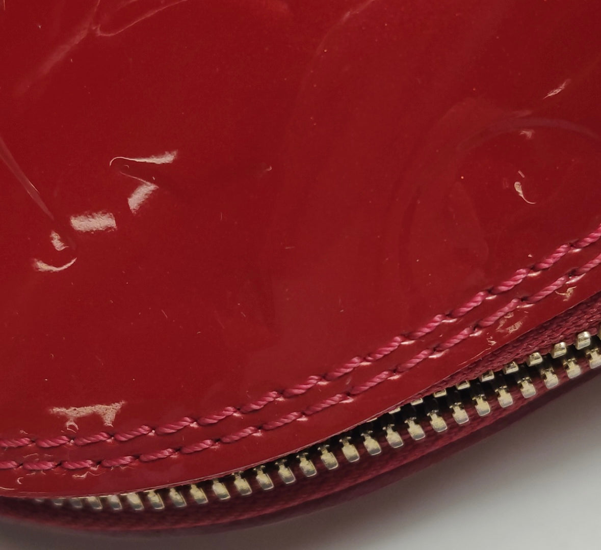 • Embossed LV monogram Vernis patent leather in red